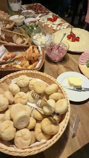 The reason for a lower score is the misunderstanding of my request by a staff member. I specifically asked if there are many vegan options for the buffet breakfast and the lady at the till rushed saying yes, yes just to charge 76zl for two sets. Don’t get me wrong the place is beautiful, but if you are allergic to milk products, don’t eat meat -you follow plant based diet, choose another place to eat. The spread for breakfast is wide and a vegetarian and a carnivore will be very happy. There are eggs, meats, a nice selection of bread. If you are vegan like myself, it’s very limited -almost all salads are with mayo or cream. No plant based milk available, if you ask they will give you soya but for oats it’s 3zl extra. This seems exaggerated since there is very little a vegan can have. I did ask before paying. The staff need to be more aware of what vegan or vegetarian is -my guess is the lady at the till maybe did not understand. Otherwise, it’s just to make someone pay. The place is super popular, it would be a good idea to put explanations for everything in English. Some customers had to ask about the meats -they wanted to know what contained pork. If you target tourist, please be...