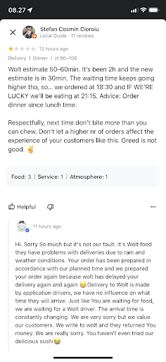 Normally I NEVER write recommendations about ordered food because I believe when you want to rate a restaurant, you need to get and full experience and especially (!) food that’s not older than 5 minutes.