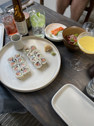 Extremely long wait time for food (2hrs for three sushi rolls, each came 10-15mins after the next one), sushi was not good quality, uneven and poorly done which I would not expect considering the price. I tried to come up to the servers a few times to order a dish and I'd get ignored, at some point our cutlery was taken while we were still waiting for the third sushi roll, the waitress was very nice and she came back, but the overall experience was so bad knowing the bill was over 500pln. I'm happy to pay for high quality of food and good service, this didn't happen here. Outstanding design of the space, everything else should...