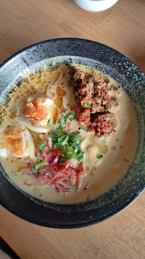 Read moreZachęcony pozytywnymi opiniami przybyłem do tego miejsca, lecz niestety się negatywnie rozczarowałem od samego wejścia. Od samego początku pojawił się pierwszy red flag, czyli rozłożone miseczki na sos sojowy w których dało się znaleźć paproszki..niby mała rzecz, ale jest mnóstwo sposobów by zapobiec temu. Składamy zamówienie na ramen kelnerka nie jest świadoma który makaron jest z wieprzowiną, a który jest z wołowiną. Dodatkowo wprowadza nas w błąd. Nasze chwilowe zapoznanie się z kartą wystarcza by, naprostować jej myślenie na właściwy tor. Dodam że dużym minusem jest że restauracja nie oferuje poziomu ostrości czy różnych makaronów. Ale przejdźmy do samego jedzenia, czyli tego co najważniejsze w restauracji. Dostajemy dania które się od sobie różnią... (jeden z największych błędów w restauracji jaki można popełnić). W naszym przypadku w ramenach w jednej misce był dany składnik, a w drugiej go nie było. Ale juz pomijam może błąd/roztargnienie/zapomnienie..Przejdźmy do najdziwniejszej i najgorzej wykonanej części, czyli jajka. W jednej misce żółtko perfekcyjne rozlewające się, a w innej już jajko było wręcz na twardo. Jajko dodane w każdym było zimne i niszczyło doświadczenia z jedzenia. Lecz to nie koniec ponieważ jajko nawet nie było marynowane, co uważam za standard w restauracjach tego typu. Co jeszcze mnie zawiodło to brak dostępnych składników osobno do, do prawienia sobie potrawy..Czy w ramenie orzeszki nerkowca nie prażone.