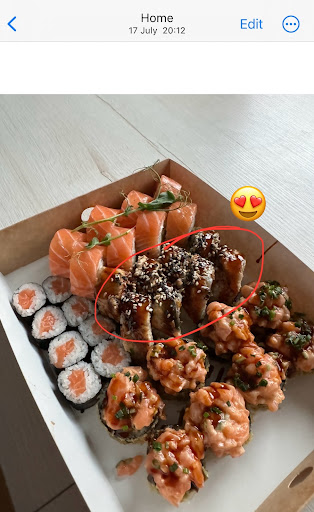 Uwielbiam rolkę z węgorzem, sos na tych sushi gra DUŻĄ rolę, a w ostatnich zamówieniach tego sosu było coraz mniej... Dwa razy zamawiałam roll tempura z łososiem, gdzie w składzie powinien być łosoś, kawior, awokado i imbir - w rzeczywistości tylko łosoś i awokado (patrz zdjęcia) + gumowe awokado 😭