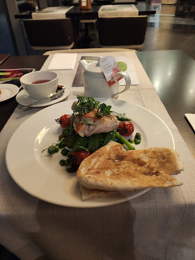 The service and atmosphere were perfect. Stuff was friendly and had good English. The dishes were beautifully presented. We ordered Tuna Salad and Chicken with green vegetables. We could notice that dishes were prepared to a high standard, however it seemed to me that the chicken was somewhat dry (which basically is typical for this bird, and which should be compensated for by sauces or side dishes), and the side dish with sauce was oversaturated with spices. The greens themselves tasted good, but the sauce oversaturated the taste buds so much that it was very difficult to eat it; the taste became unbearably strong. The salad and drinks were tasty, though. I would recommend to taste a...