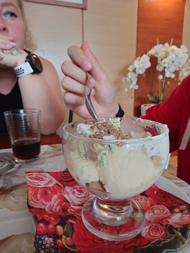 Read moreZacznę od wyglądu no czysty PRL ale właścicielom chyba o to chodziło aby restauracja pozostała w tym stylu. W ubikacji czysto na sali też. Miła obsługa. Jedzonko prawie dobre a dlaczego prawie postaram się wyjaśnić. Byłem tam 2 razy z żoną i synem. Za pierwszym razem zamówiliśmy placki z gulaszem i fileta grillowanego. Placki bardzo dobre, smaczne, filet syna też chwalił. Niestety nie byliśmy zadowoleni z surówek, po prostu nam nie smakowały, nie doprawione. Za drugim razem zamówiliśmy golonka z kapustą i schabowy z kością. Co do mięsa nie mamy zastrzeżeń. Jeśli chodzi o kapustę to niestety ale porażka. Kapusta była zimna, nie doprawiona, lekko twardawa. Do golonki nie dostałem chlebka ani musztardy czy chrzanu. Trochę dziwi. Ogólnie nie mam zastrzeżeń ale jeśli chodzi o jedzonko troszkę mogłoby być lepiej. Na zewnątrz było dość ciepło i udzielało się to ciepło wewnątrz mogły być jakieś wentylatory żeby ruszyć tym powietrzem. Mam tu jeszcze zastrzeżenie co do deseru który zamówiliśmy synowi. Miały to być puchar lodowy z owocami tak było napisane w menu a syn dostał lody z bitą śmietaną bez owoców. Ceny dość przystępne jak na dzisiejsze czasy. Porcje dość spore można sobie pojeść. Tych kilka uwag nie przekreśla tej restauracji, restauracja godna uwagi...