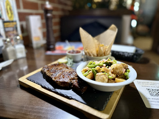 I had ordered a dry seasoned beef steak with potato wedges and steamed green beans. The portion size was adequate. The sides were good, steak was good, onion salza was good but for a 5* rated steak I would expect little bit more. E.g. the slate plate could have been a little bit warm or pre-heated to keep the meat warm. The sides were warmer than the steak. The serving style was okay, thou.