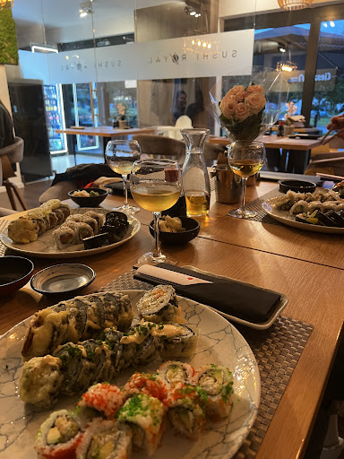 Read moreWczoraj po raz pierwszy odwiedziłyśmy restauracje Royal Sushi. Z "Royal" jedzenie nie ma to wiele wspólnego, chyba że mówimy o cenach, które zupełnie nie są adekwatne do jakości. Miejsce wygląda na ładne, zadbane, ma być takie niby luksusowe. Obsługa bardzo miła, kulturalna, na wysokim poziomie - tutaj zupełnie ma nie co zarzucić. Zamówiłyśmy wegetariański ramen z halloumi - bardzo duża miska z wywarem, dużo dodatków, fajnie przygotowany ser w panierce panko (to nie może nie smakować), ale nie urwało. Całość nie wydawała się być pierwszej świeżości. Dodatkowo zamówiony został zestaw sushi KIRIDASHI za jakieś 90 PLN. Zestaw zawierał 3 różne rolki, łososia na 3 różne sposoby - pieczony, surowy, w formie tatara w panierce. Pieczony łosoś został podany na zimno, z ogórkiem, bez słodkiego sosu. Był suchy, nie wyrazisty, tzw. zapchaj dziura. Surowy łosoś śmierdział, był ciągnący, łukowaty, do tego został podany z majonezem - co wywołało wielki niesmak, a następnie zgagę. Tatar z łososia w tempurze, jako jedyny wydawał się świeży. Temura była ciepła, tatra było bardzo niewiele w środku, a wszystko zasypane ostrym porem - co mogłoby fajnie współgrać, gdy składniki i ich ilość pozostałaby zbalansowana. Była to zdecydowanie najlepsza rolka ze wszystkich wczorajszych opcji. Do tego wszystkiego zamówiłyśmy herbatę wiśniową, która była pyszna, i karafkę filtrowanej wody, za którą zapłaciłyśmy dodatkowe 10 PLN (informacji o cenie za wodę nie było przy zamówieniu). Za wszystko (dwie osoby) zapłaciłyśmy około 150 PLN. Po wyjściu z knajpy dostałyśmy w prezencie bolące brzuchy, zgagę, oraz nudności. Może źle trafiłyśmy, był to słabszy dzień w knajpie, na kuchni. Ale smak...