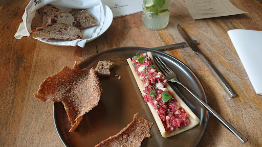 Second visit existed of 3 courses A good steak tartare which was a bit overseasoned for my taste with salty ingredients making it hard to taste the meat but that might be just a matter of personal preference. between the courses i've noticed a sticker stuck to a piece of lime in my limonade resulting in it being removed from the bill. Second course was cappelletti filled with mushrooms served with sabayonne and freshly grated truffle. I found the sabayonne to be a bit overpowering with salt and sourness, but that didn't make it a bad dish just worse than you would expect from a dish made with good ingredients. after i've ordered some non sparkling water i've gotten some lightly sparkling water which was switched immediately. Dessert was a lavender panna cotta with honey and crunchy oats which is normally a part of a 3 course lunch but it cost me only 5 PLN, only detail i didn't like was that it had little/no sugar in it and you had to manage honey distribution throughout it manually.