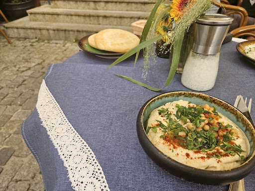 Read moreWe entered the place in the evening - the student waitor greeted us Shalom and Dzien Dobre. The place tries to mimick a jewish style. However, they told us that the food isn't kosher. That wasn't really a problem but it calls itself Jewish restaurant. Don't expect that. It is rather a Jewish inspired restaurant. They have a lot of dishes on the menu that sound Jewish. However, in Israel I haven't seen most of them. Maybe it is more polish traditional. Gefilte Fish I remembered as a poor People's food from Jewish friends. As a vegan there wasn't too much to eat. Only Hummus and Falafel which is definitely not traditional polish Jewish food. I tried the Hummus which was decent but a relatively small portion and came only with one pita. The pita wasn't as good as in Israel. There could be more authentic foods on the menu. As I said, don't expect any real Jewish food there, or Israeli. And as a vegan you'll be rather disappointed because of limited options. I can't tell anything about the non vegan food. The friend I was with had Labane. I know it from Israel but it rather looked like some cream cheese. In the picture is the small portion of hummus...