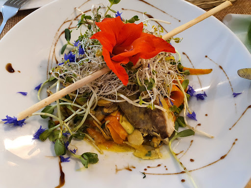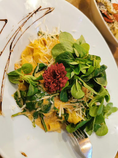 Read moreTrwa właśnie wyżej wymieniony festiwal, więc nie myśląc ani chwili zdecydowaliśmy się w nim uczestniczyć, wybór padł na tę restaurację, skusiło nas menu. Rzadko dajemy niskie noty wraz z moim partnerem, ale ta restauracja sprawiła, że szybko ją opuściliśmy. Od naszego mieszkania mamy tam kilka kroków z zewnątrz wygląda na małą klimatyczną knajpkę w stylu romantycznym. Wchodzimy do środka, wystrój bardzo miły i przytulny, Pani wskazuje nam stolik, siadamy, dostajemy drinka, który nam smakuje, potem przystawka i tu już zaczynają się schody, awokado w sałatce niedojrzałe, trafił się mi zaledwie jeden dojrzały kawałek, reszta całkiem smaczna, w wersji mięsnej partner chwalił kawałek kaczki, krewetka również była smaczna. Drugie danie? W wersji wegetariańskiej bardzo smaczne pieczarki, wersja mięsna z królikiem również była smaczna poza puree, które było bez smaku. Deser (Brownie) smakował nam najbardziej. Co nas więc odraziło w tej restauracji? Niestety obsługa, nasz stolik znajdował się tuż przy barze, gdzie kelnerki plotkowały ze sobą i głośno się śmiały. Gość nie może mieć pewności czy przypadkiem nie śmieją się z niego. Rozumiem plotki w pracy, ale od tego jest zaplecze by na chwilę wymienić się dwoma zdaniami, a nie tuż przy gościach ucinać...