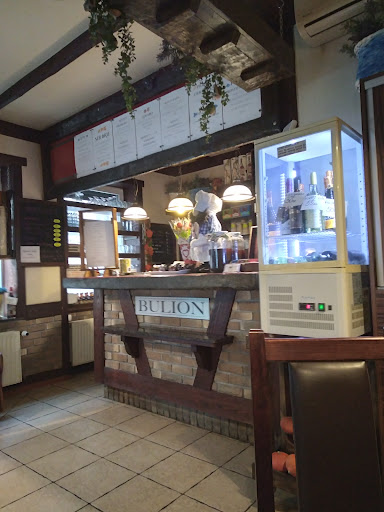 Warto czytać opinie w google. Gdybym nie przeczytał, będąc przejazdem w Pile, to pewnie nigdy bym się nie dowiedział o "Bulionie" Pierwsze wrażenie - generalnie miło i przytulnie, choć białe chłodziarki do wina i napojów, trochę, ten..rustykalny charakter zaburzały. Krótka rozmowa z Panią z za baru nie pomogła niestety wyborze - w rozpisce menu nad barem, było kilka dań, które chciałbym zdegustować od razu. Wybrałem jednak tylko dwa : pomidorowa z makaronem na pierwsze... makaron , grubsza nitka, może nie górna półka, ale ugotowany w punkt, natomiast sama zupa - przepyszna. Miała w sobie to "coś", składnik trudny do rozszyfrowania. Czy to dobrej jakości pomidory, ale przesmażane na oliwie, coś w tle jakby kropla sosu rybnego, nie będę udawał fachowca - wie wiedziałem. Poprosiłem więc miłą Panią, aby zapytała szefa kuchni.. Tak, takiej odpowiedzi, właśnie się spodziewałem - dodaje tam zawsze..swoje serce. To właśnie czuć. Drugie danie, to taki klasyk-nie klasyk..kotlet z karczku wieprzowego przygotowany jak klasyczny schabowy. Wiedziałem już, że będzie duży, ale jak zobaczyłem go przed sobą na talerzu, to zacząłem się zastanawiać czy..dam radę. Idealnie usmażony, mięso rozbite do odpowiedniej grubości, nie takiej przypominającej liść spadający z drzewa, chrupiący..do tego ziemniaki świeżo ugotowane z koperkiem..5/5 Była jeszcze kapusta zasmażana, na którą wymieniłem surówkę z warzyw, ale nie był to mój smak akurat, więc jej nie oceniam. Jedna tylko uwaga krytyczna do Chefa - kuchnia szeroko pojęta - rustykalna - dawaj tylko to swoje serducho i to wystarczy !! Po co ten jakiś z du.y garnier w postaci wstążki z surowej marchwi, czy plastrów zielonego ogórka :) Odwiedził bym Was...