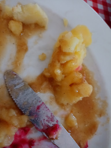 Obiad odebrany w dniu dzisiejszym był zdecydowanie jednym z najgorszych przeżyć kulinarnych w moim życiu. Zupa Żurek która była zrobiona najprawdopodobniej z gotowego bulionu z którego można zrobić wiele zup naraz był zupełnie niejadalny, sałatka porowa do której dodano tyle cukru że można by było dostać hiperglikemii oraz sos pieczeniowy który miał smak i konsystencję zmiksowanych resztek schabowego oraz wszystkiego innego co tylko „kucharz” miał pod ręką. Chciałbym powiedzieć że jadłodajnia obroni się ceną ale nawet z tym sobie nie poradzili gdyż w Pile i okolicach jest mnóstwo tańszych jadłodajni gdzie zjemy za rozsądniejsze pieniądze nie ryzykując...