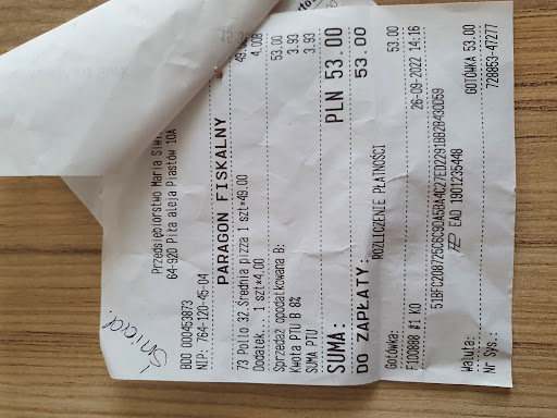 Dzisiaj zamówiłam do domu, jak wielokrotnie wcześniej, pizzę, tym razem pollo, no i niemiła niespodzianka. W pizzy znalazłam kamień, nie kamyczek, a kamień. Pojechałam więc do lokalu i cóż? Niemiłych niespodzianek ciąg dalszy. Pani właścicielka, siedzącą dumnie przy stoliku przed laptopem, z uśmiechem na twarzy, popatrzyła na kamień, na paragon, wzruszyła ramionami, zapytała co ma z tym zrobić i stwierdziła, że to tylko słowa i że jest ubezpieczona i mam się udać po odszkodowanie do PZU. Zdębiałam jeszcze bardziej, kiedy powiedziała, że w tej pizzy nie ma produktów, w których mógł być kamień. Wnioskuję wobec tego, że w innych pizzach takie produkty są. Zachowanie bizneswoman było skandaliczne. Czy naprawdę pani sądziła, że za 53 zł znajdę kamień na ulicy i pobiegnę z wymyśloną historią do lokalu? Niezła wyobraźnia i chyba nadmiar czasu. Tak naprawdę poszłam tam, żeby przejrzeli te swoje produkty, bo mogło się to powtórzyć w innej pizzy. Wprawdzie liczyłam na przeprosiny i nawet gdyby pani nie zwróciła mi pieniędzy, to przyjęłabym je bez dalszych działań. W tej sytuacji niestety, kiedy zrobiono ze mnie oszustkę, będę dochodziła odszkodowania w instytucjach do tego powołanych i na pewno nie będzie to PZU. Nie wiem już, mało tego, że wyglądałam w pani oczach na oszustkę, to jeszcze na idiotkę? Był to mój ostatni kontakt z biznesem tej pani. Strzeżcie się, bo okazuje się, że w daniach tego lokalu można znaleźć więcej niż by się chciało, a później...