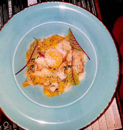 Read moreTo była moja pierwsza a zarazem ostatnia wizyta. Restaurację odwiedziłam 14 lutego - wcześniej wykupiony bilet rezerwacyjny na kolację walentynkową, ponieważ tylko przyjeżdżając osobiście i płacąc na miejscu można było dokonać rezerwacji, a więc załoga wiedziała, że będą mieć full obłożenie. Od samego wejścia wiało nierównym traktowaniem gości. Czas oczekiwania na złożenie zamówienia wyniósł jakieś 30 min, pomimo tego, że kelner który miał się nami zaopiekować cały czas kręcił się w pobliżu. Zamówione 2 przystawki i 2 dania główne. Szczerze? Myślałam, że naprawdę nie doczekamy się jedzenia, a jak już przyszedł kelner to dania były pomylone i musieliśmy czekać kolejne 10 min. Stolik obok nas w przeprosinach za długie oczekiwania otrzymał naleweczki od kelnera - w ten czas kiedy my musieliśmy się prosić o oliwę oraz przyprawy które były na KAŻDYM stoliku oprócz naszego, na co kelner: nie wiem czy Państwu załatwię, bo to towar deficytowy dzisiaj...SERIO? Dziękuję Państwu obok, którzy usłyszeli rozmowę, wyśmiali kelnera i oddali nam przyprawy ze swojego stolika. Bez soli i pieprzu nie dałoby się zjeść tej carbonary, w zasadzie to tylko spróbowałam. Najgorszy makaron który jadłam w życiu, taki z gotowca byłby lepszy. Gruba rozgotowana pasta, suchy i zważony sos oraz dosłownie kilka grubych kawałków boczku i 0 smaku, 0 soli i pieprzu. Tatar był sino-szary, 0 koloru mięsa. 1 gwiazdka za carpaccio - było ok. Patrząc na pozytywne opinie o tym lokalu, mam wrażenie, że albo ludzie nie mają bladego pojęcia o tym jak powinno smakować i wyglądać jedzenie albo są opłaceni. Dziękuję przynajmniej za to, że to tym mięsie nie wylądowałam z zatruciem w szpitalu. Ja osobiście...