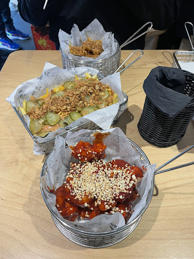 Read moreKurczak smaczny, ale niestety do prawdziwego koreańskiego kurczaka takiego jakiego jadłem w Korei jeszcze mu trochę brakuje. Panierka źle zrobiona i mało chrupiąca, za dużo mąki kukurydzianej. Sosy spoko, ale np. bultak od sweet chilli różni się tylko słodkim syropem. Prawdziwy bultak jest o wiele ostrzejszy i gochujang nie jest jego jedynym i głównym składnikiem. Mały minus też za to, że w mojej ocenie kurczaki z sosami o wiele za słone, jakby sól miała coś zamaskować. Lokal w stylu knajpy koreańskiej, ale za mało miejsca i niewygodne siedzenia. Przy samym czekaniu na kurczaka plecy mnie rozbolały. Siedzenia na podwyższeniu okropne. Nie da się tak normalnie zjeść siedząc bokiem. No i duszno. Jest maj, więc latem tam w środku można chyba umrzeć... Obsługa poprawna choć nie jestem fanem zwracania się do klientów per ty. Dania wydawane zdecydowanie wolniej niż w Korei.