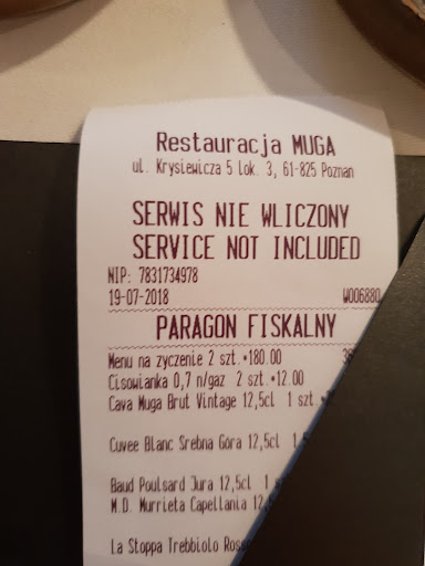 A few days ago we decided to give Muga the fourth and final chance after three disappointing experiences. Unfortunately, Muga failed and there will be no more attempts. Normally we would never try so many times after a disappointment but the fact is that the basic quality of the kitchen in Muga is on the level of a Michelin star but a good kitchen is not enough to get a star and the way things are I doubt that Muga will ever get one. In connection with previous visits we once experienced so small portions at a Vallentines Day menu that we had to go elsewhere to eat afterwards. We also once asked for more bread and butter (butter in microscopic portions) to see it added to the bill. Our latest and last experience was the 6 course degustation menu for 3 persons. Appetizers and starters were excellent and showed the potential of the kitchen. The first main course unfortunately was not up to the standard since the goose was not tender but the taste was still good. The second main course, deer, was in our opinion not well composed and did not live up to the rest. The dessert was poor and showed that Muga does not have a confectioner (in contrast to all French Michelin starred restaurants) and the petit four, 2 pieces per person, was not up to a reasonable standard either. We were served two glasses of wine each and the wine alone came to 249 zł for 6 glasses and was substantially overpriced for what it was. During the meal we were each served one small roll and half a loaf of dark bred and a very small portion of butter. While the quality of this was good the amount was completely inadequate. A little later we were served another roll per person and this was added to the bill at 15 zł, which is inadmissable since we didn't ask for it. This kind of stinginess is very characteristic for Muga and the policy of trying to press even more money out of the guests this way is not only bad business ethics but outright stupid since we can accept 195 zł or even more for a menu but not being taken to the cleaners for extra butter, rolls, overpriced wine, etc. Any good restaurant be that in France or elsewhere would deliver the amount of bread and butter needed throughout the meal without discussion or additional charges. In this respect, Muga failed for the fourth time and we felt (and were) cheated. We will...