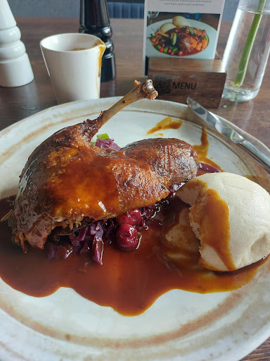 We came here for a yummy lunch right after Garbicz Festival, I was crazing for some yummy nice meal after eating at the festival for 5 days. I love the ambience & elegant design of the dining room, we picked a table outside because we want to have the perfect view of the Proznan Tower Clock Plaza. My first course was the Cauliflower soup with fluffy cheese flavour cream & green oil, it was delicious, savory milky broth. My Sayang had the Traditional sour sausage soup. It was hearty homey intense sour soup but surprising additive. Then we both share the most popular dish, the Traditional Proznan Roasted half piece of Duck with Chinese Steam Buns & Cherry Cabbage picked source. The presentation was delightful & I am so impressed by their steam bun, they are softer & moist hot steamy buns as good as the original Chinese steam buns, the half.a duck was a decent good size for both of us, the meat is perfectly hot & tender, skin is just crispy enough & not much fat. You must try eat the skin with the duck meat as they compliment each other. The source is slightly sweet savory & creamy, intensely yummy so you don’t want to pour too much source on the duck as it could over cast the natural duck flavor. I highly recommend this restaurant, they waiters are gracious, handsome, speak very good English, I wish we were more hungry to try their dessert. we will be...