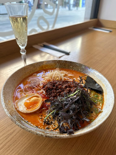 At the first moment the ingredients looked good. But the ramen dishes were served almost cold. The broth was barely lukewarm, the boiled egg was literally cold. The noodles were extremely hot inside, it seems it was heated up in the microwave and thrown into the cold broth. The pak-choi leaves were super rubbery, I could barely bite them. I complained that the food was cold. The waitress told us that we had to mix the ingredients to heat everything up. Well, normally the ramen dish comes super hot to the table and we need to stir it to cool it down, not to heat it up. The chopsticks were very poor quality, and for those who needed a support to hold them, they improvised an elastic with a piece of paper in the middle, which could easily fall into the soup. All of this created a discrepancy in the dish that made it impossible to appreciate the whole thing and practically ruined the evening. We decided to leave and take the leftovers home to heat up and try to enjoy at least a little bit. The waitress, after trying to justify for the second time that there was no problem with the temperature of the food, brought us two bowls to take away and left them on the table for us to pack up the leftovers ourselves. It seems that in addition to waiting in line and paying for the food, we also have to pack it ourselves and reheat the food. It would be easier to cook at home, or even better, just go to another decent ramen restaurant around. I do not recommend this place! Don't waste your time...