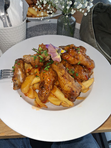 Read moreRestaurację polecił mi kolega, który często tam się stołuje, wielokrotnie przejeżdżałem koło tego budynku i nie raz zastanawiałem się co to za lokal, dzisiaj wpadłem tam przekonać się naocznie i nabrzuśnie. Zamówiliśmy po porcji michy panierowanych, pikantnych (bez przesady- tylko tak groźnie grzmi w karcie) skrzydełek na zalewie miodowej na podmurówce z zarąbistymi frytkami. Jak zobaczyłem co Kelnerka nam niesie to jęknąłem -a kto to tyle zje? Pani się tylko uśmiechnęła. Jedzonko miodzio, koleś zjadł wszystko i zrezygnował z pójścia na siłownię, ja poprosiłem o zapakowanie połowy. Ceny rozsądne, jest parking, winda, szybka i miła obsługa. Z...
