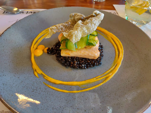 Na bardzo wysokim poziomie – kuchnia zdecydowanie zasługuje na pochwałę. Stek był absolutnie genialnie przyrządzony, miękki, soczysty. Aromat i smak świadczą o świetnej jakości mięsa i umiejętnym przyrządzeniu. Kaczka z kolei okazała się kulinarną perełką, czyli miękka, rozpływająca się w ustach, podana z dodatkami, które dopełniały całość, a nie przytłaczały głównego bohatera dania. Widać, że kuchnia ma świetne wyczucie smaków i balans kompozycji na talerzu.