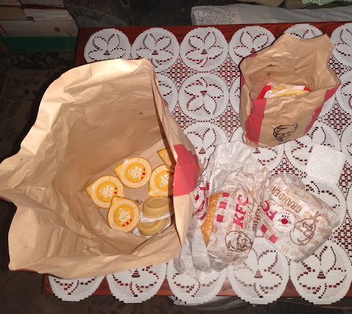 Zamówiłem co widać na zrzucie ekranu z zamówienia (niestety nie ma - bo Google uważa, że to naruszenie praw autorskich - a więc 1x Whisky BBQ Grander, 1x Whisky BBQ Grander Box, 1x Whisky BBQ Grander zestaw powiększony o 5 Onion Rings z sosem Kentucky Gold, 6x dipy Kentucky Gold) . Czas oczekiwania do 19:02, ale myślę sobie luz... Dzień kobiet, dużo zamówień. Rozumiem.
