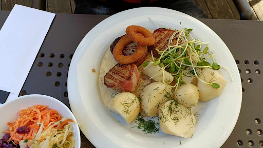 Good Polish kitchen in a somewhat unlikely place situated just behind a gas station. Hidden behind tall bushes you'll find a nice garden with enough room to sit and dine but also a playground for the little ones i0n the back, all hidden away from traffic and the street. Inside the atmosphere also doesn't disappoint, tasteful and modern with the right hints of a Polish traditional "karczma".