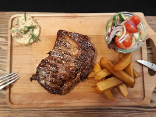 Now the food. We both made the same order - Entrecôte (55 PLN) with small fresh salad on the side and homemade fries. The meat was absolutely gorgeous! Better than in any so called steakhouse in the city. Ordered rare, served rare. Tender, nutty, tasted like meat, not rosemary (happens all the time in other restaurants). On top it had a.. miso butter? We were sceptical at first, however it really gave the meat extra kick and genuinely underlined the flavour of the steak. The fresh vegetables had a hint of a really tasty vinegret. I would only complain about the container, which the salad was served in - small and narrow, it wasn't easy to eat from it with a big fork. Lastly, the fries... Well, it's really hard to get good fries. People might think that fries is the top easiest fast food meal, where in fact homemade fries take lots of time and preparation. So the fries were no good. Soaked with oil, didn't get enough heat perhaps. They had a really good shape, so somewhere on the way one step in the process went wrong and the fries turned out terribly. Other than that, the dish was great, you just cannot go wrong with a good quality, perfectly fried steak.