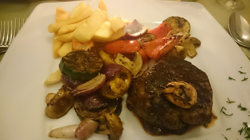 Read moreRestauracja fajna i serwująca dość smaczne jedzenie. Do tego podano bardzo dobrze przyprawione białe grzane wino, ale niestety jedna gwiazdka mniej w mojej ocenie za coś co mnie totalnie zaskoczyło. Otóż restauracja ma chyba dwie salki, z której jedna była niedostępna, bo była jakaś impreza zamknięta. To zrozumiałe. Usadowiliśmy się zatem w pierwszej salce, a naszym celem głównym było po prostu zjedzenie obiado-kolacji. Zamówilismy na co mieliśmy ochotę, a tu w trakcie naszego spożywania posiłku zaczęły pojawiać się kłęby tytoniowego dymu. Otóż jeden z gości nieopodal zaczął palić cygaro. Nie zwwróciłem mu uwagi, bo wolałem najpierw wyjaśnić ten fakt dyskretnie z panią kelnerką. Otóż okazało się, że w tej sali można palić. Niedługo przysiadła się do niego kobieta, która zapaliła papierosa. Nie wiem, czy to jest zgodne z obowiązującymi przepisami, ale z kulturą ma to zapewne mało wspólnego. Gdybym to ja palił, wówczas mimo wszystko nie odważyłbym się siegnąć po papierosa tam gdzie inni spożywają posiłki, a zaznaczam, że inni goście też byli w trakcie konsumpcji. Szkoda, że Pani kelnerka nie zaznaczyła już przy naszym wejściu do restauracji, że sala dla niepalących jest zarezerwowana i pozostała tylko sala dla palących, w której serwuje się obiady. Po prostu poszedłbym do innej restauracji, a tak po zjedzeniu posiłku i zapłaceniu rachunku szybko wyszedłem, choć miałem jeszcze ochotę na kawę i deser, bo jedzenie naprawdę...