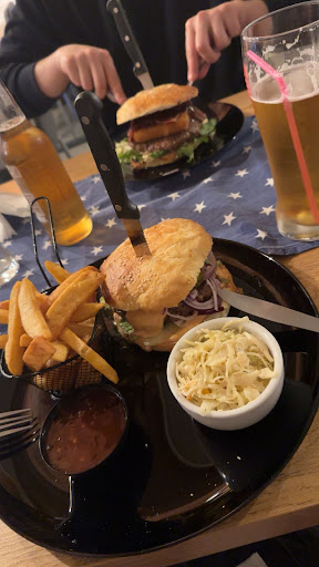 Już przy wejściu czujesz, że to będzie wyjątkowa podróż po smakach. Wnętrze zdobią drogowskazy i zdjęcia otwartych amerykańskich szos, a w tle słychać klasyczne hity, które dodają energii każdemu kęsowi. Obsługa jest tu profesjonalna, ale i serdeczna, zawsze gotowa polecić coś z menu.