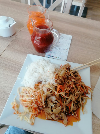 Read moreNajgorsza azjatycka kuchnia w jakiej byliśmy w życiu. Kurczak w 5 smakach: wszystko zatopione w przesłodzonej mamałydze. Surówka słodka jak ulepek. Niezjadliwe. Kurczak w zielonym curry to rozwarstwiający się bełt w kolorze szarozielonym. Nieostre i bez krzty smaku. Pan próbował wmówić nam, że zielone curry nie jest ostre. Zaproponował, by dolać sobie ostry sos. 🙄 Nie wiem skąd te wysokie oceny. Dajemy 1 gwiazdkę za nierozgotowany ryż. Tylko to się dało zjeść.