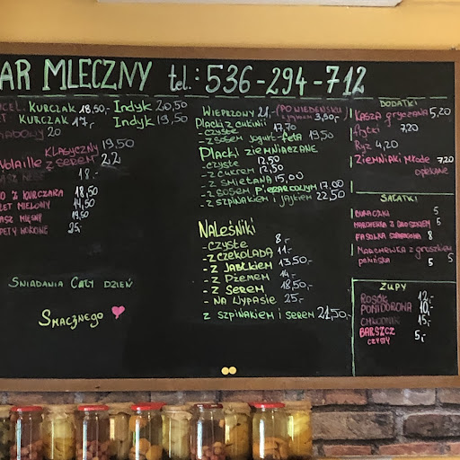Read moreJeśli nie jecie obiadów przed 14 to prawdopodobnie w tym barze mlecznym nie dostaniecie nic poza schabowym i pierogami. Po godzinie 14 praktycznie już nic nie ma i nie można nic zamówić. Wracając z pracy i jedząc obiad o 16 raczej nie posilicie się tutaj. Menu jest bardzo duże i rozmaicone, natomiast co z tego jeśli połowy menu najzwyczajniej w świecie nie ma i jest może z 5 pozycji + codziennie dodatkowo jedno danie, którego nie ma w menu i nigdy nie wiadomo na co się trafi. Powinni chociaż aktualizować na stronie co w danym dniu będzie i do której. Jeśli restauracja otwarta jest do 20 to znaczy ze powinna serwować jedzenie do tej godziny a nie do 14. Wieczorem to już chyba tylko naleśniki można zamówić. Jedzenie w miarę dobre, chociaż mam pare uwag. Zamówiłam 3 razy devolaya, 2 razy był pyszny za 3 razem nie miałam sera nawet. Grillowana pierś z kurczaka jest sucha i cieniutka. Z warzyw i dodatków praktycznie nic nie ma, tylko surówki. Byłam zachwycona jak się otworzyło, myślałam ze będę wpadać często, ale niestety pracuje do 15 i już tu raczej nic nie zjem o tej godzinie, a próbowałam...
