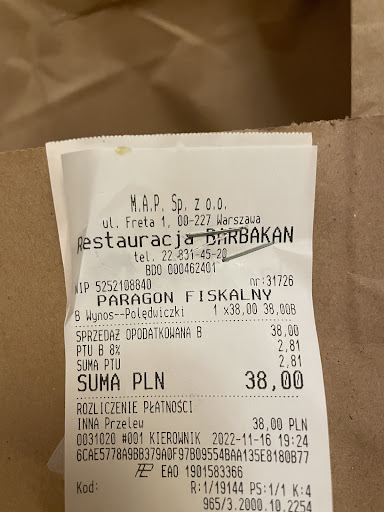 My wife and I were visiting Warsaw for few days. On Sunday we had lunch at Barbakan. I had duck while my wife had salmon. We both liked the place and the meals. I said to my wife you should try the duck. Before heading to the airport on Wednesday we stopped there for lunch and we both had the duck. We were good though after an hour we started to feel heavy. I thought it will go away and we headed to the airport 2.5 hours before the flight thinking we will do some duty free shopping. Once we got there we felt very sick. Both of us couldn’t get out from the toilets. We barely could stand, got chills, sweated and had diarrhea. We couldn’t even go to the gate. I thought we will not make the flight. The symptoms continued throughout 3.5 hours flight and still going on. We are in Armenia for few days visiting my in-laws but instead of having good time with them we are now in the bed. Even called emergency. This is very wrong! I don’t know what it was about yesterday’s duck. I hope no one got sick like us. This place need to be closed if this is not a one...