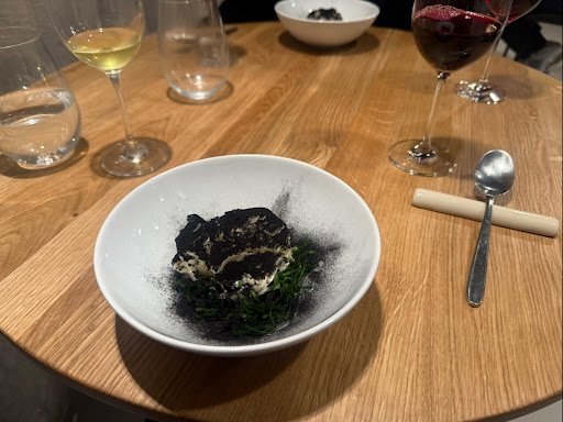 Once we began the meal, we noticed that the dishes and drinks leaned heavily toward sour and bitter flavors. Many courses were either very acidic or overly salty, which overwhelmed the subtler elements. We chose what was presented as a Polish sparkling wine, though it turned out to be from a French winemaker who had settled in Poland. While that backstory was interesting, it felt odd when we were specifically looking for something unmistakably local.