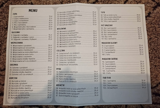 Lokal wygląda jak na stereotypowego "Chińczyka" przystało. Wystrój minimalistyczny, stosunkowo dobrze zagospodarowana przestrzeń, ale jeśli wymaga się "wrażeń z wystroju" to już nie ten adres. Usiąść jest gdzie, zawiesić kurtkę też. Zamówione jedzenie: zupa Wonton i Kurczak Sajgon. Zupa *(cena 8 zł za miseczkę średnich rozmiarów) nie porwała moich kubków smakowych, ale nie mogę tez na nią narzekać. Porcja w sam raz, albo nawet troszkę za duża jak na przystawkę. W zupie kilka kawałków kurczaka, 3 pierożki lepsze niż z garmażerki, zielenina. Można zjeść, ale kolejnym razem spróbuję innej. Widziałem, że mają też PHO za 18 zł, może kiedyś się skuszę. Kurczak sajgon nie najgorszy, aczkolwiek trafiła mi się chrząstka w jednym z kawałków. Jak na danie za 16 zł porcja bardzo zacna i z pewnością wystarczy rosłemu chłopu, żeby się nią najeść, a dziewczynom to nawet dwóm. Wielkość dania przeważa nad jego jakością. Suma sumarum, dałbym czwórkę z minusem w 6 stopniowej skali. Obsługa zdecydowanie sprawia wrażenie, że pochodzi z Azji lub ma azjatyckie korzenie. Klientami jakoś szczególnie się nie przejmują, sami jedzą "swoje" dania na sali, co odebrałem jako dobrą rekomendację. Jako dodatki do dań można zauważyć jakieś sosy, keczup i coś co wyglądało jak Magii plus pieprz i sól. Do zupy zabrakło mi octu z czosnkiem, ale to chyba nie ta kuchnia. Co mi się spodobało to Menu obrazkowe z cenami na witrynie i za "barem". Mniej więcej wiadomo co zamawiamy i w jakiej cenie. Do dyspozycji są sztućce plastikowe i metalowe - do wyboru, ew. pałeczki. Generalnie po pierwszej wizycie lokal sprawia raczej wrażenie knajpki budżetowej, gdzie można szybko i tanio nażreć się do syta, niż lokalu aspirującego na miano restauracji przez duże R. Sam ponowię wizytę, tym razem jednak nie popełnię błędu i zjem sobie tylko 1 danie. Dwa to za dużo, biorąc nawet pod uwagę, że należę do tych większych facetów i że jedno z tych dań...