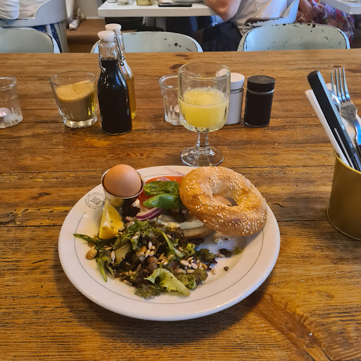 Read moreGood place for breakfast/brunch. Simple,good well prepared food with unremarkable ambiance and service staff with need of training. The queue outside is being created by lack of know how to managed door by service staff ( thats the optimistic version) or purposely creating perception of high demand that has nothing to do with actual occupancy. I had to wait for 20 min for a table ( was going through Warsaw and only had 6h to sightsee) it would have been fine if there actually wouldn't be space in the restaurant but that wasn't the case. Man that was in front of me in line got seated 5 min before me, to my surprise I was sat at the same table as him that at the time had about 8 free seats and there was about 3 tables free at the back so with couples sitting at tablesfor 4 and 6 this place was running at about 60% capacity. So there was no need for waisted 20 minutes of my limited time. 4 waiting staff where running like headless chickens while each was responsible for about 8 people. Kitchen was so tiny I was astonished that it was a restaurant kitchen but than again popping few slices of smoked salmon on bagel is not rocket science. Bagels where amazing really nice crust and just the right chewyness. Overall if my mobile wouldn't died whiles queuing and I wasn't in desperate need of charging and I would know where else to go for breakfast I would not decide to stay as there is no eggs worth waiting 20 min for unless they will have...