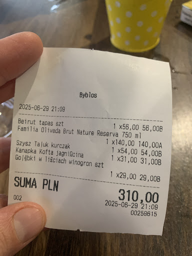 Read moreThe food is very nice, somewhat like quite poor Lebanese in Lebanon or quite fine one in Warsaw. The portions are small. The service is absolutely terrible. First, we got cold pitas in plastic bags. It was heated after we asked, so apparently it's possible. Then we got sparkling wine with no cooler. I needed to ask 3 times to get it. There was almost no ice, since they said an ice machine doesn't work. The waitress limited her interactions with us to zero and didn't ask us anything: if the food is good, if we wanted anything else, if we want a dessert (I wanted). I'd eat anything, so they lost a lot. The waitress wasn't present in the restaurant, but smoking outside and the guy behind the bar was on his phone, so I couldn't order anything. The staff was bothered, if we asked anything. They're all...