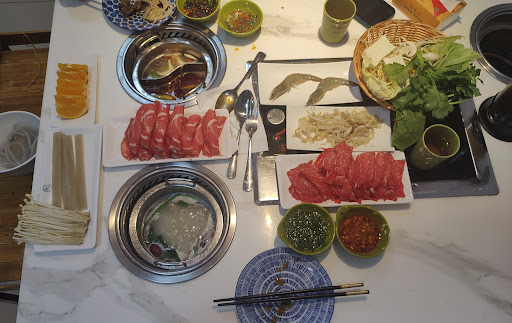 Read moreFew days ago my mom and I visited this awesome place. It wasn't too hard to find it. Once entered, we were greeted by lovely waitress and immediately sited. Place looked clean and well managed. There were nice decorations and paintings. Our order was taken and brought fast. Waitress was happy to help to choose souses and teach us how to use pots. We didn't feel awkward because of lack of experience. Before everything, we got a free green tea, what was a surprise. We had double pot mushroom + sour&sweet ones. We felt like it had too less flavor in it, however it was still nice. Meats (chicken and beef) were tasty, especially chicken, it was our favorite. Fish was good as well. We were excited to try enoki mushrooms, which turned out to be very crunchy! We think that tofu was good, however, we found out it's not something we like (but maybe you do!) My mom also liked sliced bamboo, but keep in mind that it needs to boil for a long time to get softer. In the end we got a free treat of orange. We definitely recommend this place and are going...