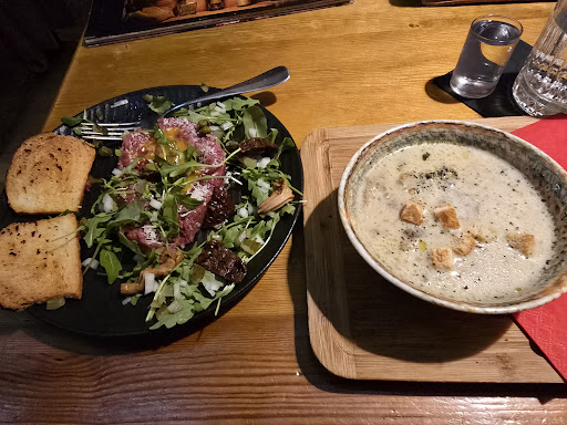 Pov visiting Warsaw. I had an excellent waiter. He was engaging and friendly and offered suggestions that were amazing! Never had tartare before, and he set me up for success. Food was beatifully presented and on my table a few minutes after ordering. Just had tartare and mushroom soup, and both had a light but sensual flavor. The soup had me forget about being the rain all day and, combined with the tartare, had me fully restored and ready to go back out. Thank y'all! Might come back, which is saying a lot because I'm leaving in just a few days. I messed up the tartare before taking the picture. His suggestion was to have a shot of vodka with the tartare. I had 2 because it was that good.