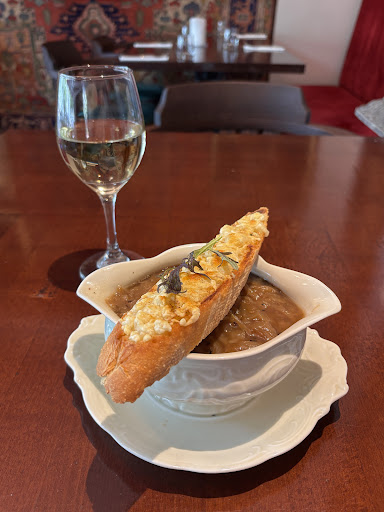 Read moreWystrój lokalu, klimatyczna francuska muzyka - porządku - jest kameralnie, nastrojowo i przytulnie. Obsługa bardzo miła, choć nie zostaliśmy zapytani czy zupę chcemy razem z przystawkami - szczególnie, że przystawki były serwowane na gorąco a zupa, która została podana jednocześnie, w tym czasie stygła. Kolejny brak pytania czy już można zaserwować dania główne. Jedzenie - tutaj niestety spore rozczarowanie - na tyle duże, aby nie powracać do lokalu, chyba, że zostanie poprawione. Przystawki: fouie gras - tekstura i smak jedynie ok, ponieważ za długo smażone przez co fouie gras traci swoją delikatność. Podana w miarę elegancko choć dekoracje minimalistyczne - no trochę mała porcja jak na cenę - 98 zł. Ślimaki - zdecydowanie niedoprawione masło czosnkowe - czosnek prawie w ogóle nie wyczuwalny, soli chyba brak. Dekoracji zasadniczo brak - parę sztuk pomidorków koktajlowych. Zupa cebulowa z grzanką - grzanka pyszna. Zupa - po prostu niesmaczna - po pierwsze kwaśna - co nie powinno mieć miejsca, po drugie - zupa francuska jest w końcowej fazie zapiekana - tutaj to pominięto - więc nie powinna nazywać się zupą francuską we francuskiej restauracji ;) De volaille z masłem truflowym - tu sporo uwag: kotlet przesolony, smak truflowy i aromat w zasadzie niewyczuwalne. De volaille podany na stercie ziemniaków puree bez żadnego kształtu i obok parę gałązek brokuł (trochę jak w barze mlecznym ;) Danie średnio smaczne, a całkowity brak artystycznego podania na talerzu wzmaga uczucie rozczarowania. Rigatoni z pastą truflową z krewetkami - danie w porządku, najlepsze z całego zestawu. Krewetki idealnie podgotowane. Jedyny minus to ponownie brak artstycznego podania - parę sztuk pomidorków koktajlowych naprawdę nie wypełnia tego zadania - wręcz przeciwnie. Podsumowując: poza niedopracowanym smakiem potraw, kluczowym minusem jest brak artystycznego kunsztu i dodatków do serwowanych dań, które pozwalają zniwelować niezbyt wielką porcję, cieszą oko i dodają klimatu - a kosztowo wcale nie...