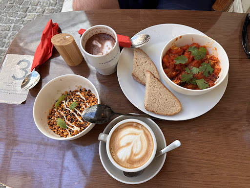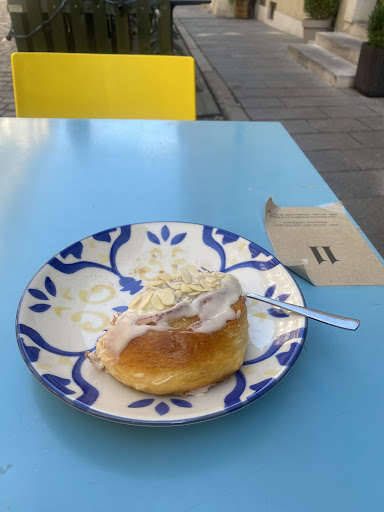 Read moreThis place was just off the main old town square. They have a really nice menu, it’s nit long but there is something for everyone. They take their coffee very seriously but also have some really nice teas. They have menus in English but I didn’t realise this at first, saw avocado and ordered - it was only when my meal came I realised there were a few other words I should have translated as it came with bacon. The staff were incredibly nice and accommodating in fixing what was entirely my mistake. When my eggs Benedict with salmon arrived it was perfect. Two eggs that were just runny enough on pillowy foccaccia spread with delicious avocado. They used pink peppercorn and chives on top which added something special to the dish. They do plant milk on request so I had a caramel iced latter too made from oat milk and because I have a sweet tooth I started with the perfect cinnamon bun! I ate outside as it was so nice out but the inside of the restaurant is lovely and airy! If I was a local I’d come here every day! Big thank you to the lovely staff...