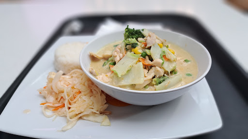 Relatively large menu of quasi Asian food served up at ok prices in the food court of this shopping centre. PRO's: The food was served up hot and fresh. The meal sizes were good. They arrived quickly. The staff member was very helpful. They have a menu in English. CON's: The food is very sweet and a little on the oily side. Having travelled to most of the Asian countries in the world, the Thai food is not the same as that in Thailand, Vietnam etc...the same can be said for their Chinese and Korean dishes. Having said this it's what I'd expect from a food court, so overall it was a good solid ok and they catered to my gluten free needs. OVERALL: If you feel like Asian food it's ok and I often have a sensitive stomach and wasn't negatively affected by our meals...