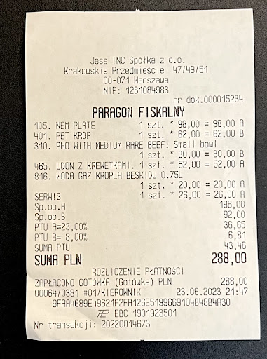 Read moreBe careful, they force you to pay an extra 10% fee for « service ». However, this is not a optional fee to thank servers for their hard work but an extra amount to pay for no reason. When we confronted them about this, they said that this extra fee is present in every restaurant in Poland which is absolutely not true. We’ve been to lots of cities and restaurants and this is the first time a service fee of 10% was included.