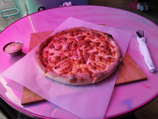 Read moreThis pizza is first and foremost good pizza. The slices are thin and crispy, and support the toppings perfectly. We had the Margherita (not photographed), the PROSCIUTTO BOYZ (prosciutto crudo / mozzarella / caramelized peach / cherry tomatoes / basil / Italian tomato sauce) and the CHEEZY STIX BOYZ (original Coca-Cola BBQ sauce / mozzarella / mimolette / mozzarella sticks in crispy coating with Cheetos). The last one sounds questionable bat best, but it was one of the best pizzas I ever had. Strangely enough - it works perfectly. Highly recommend to check this place out when in Warsaw - they have many more creative pizzas to try. The deserts (pancakes) also looked good, but we didn't have...