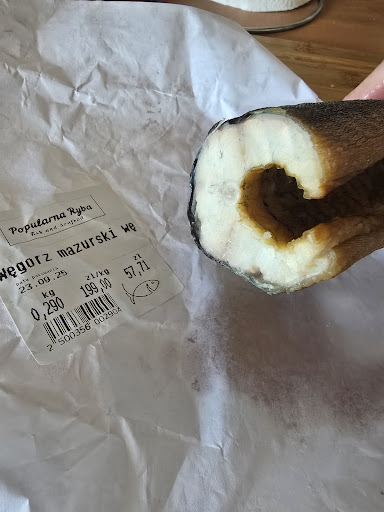 Read more⛔️uwaga- pochorowalam sie po sałatce krewetkowej Bombai Shrimp 23/09/2025 ⛔️Mam nadzieje, ze 2 Panie pojda na kurs savoir vivre . Odwiedzilam tego samego dnia 9 sklepow rybnych I ten byl niestety najgorszy;-( . Bardzo mi zalezalo sprobowac Karpia wedzonego i dzwonilam uprzednio, zeby zamowic go wczesniej, bo Pani odbiera go od swojej siostry setki kilometkow od Warszawy?. Dostalam odpowiedz( natiwinięty makaron na uszy), ze to niemozliwe w tym okresie ( sezonie) Kupilam wedzonego wegorza, brzuszki łososiowe I sałatke Bombaj Shrimp. Po salatce sie pochorowalam I wyladowalam w toalecie na cala noc. To nieprzyjemne uczucie, tak samo jak nonszalancja tych 2 kobiet? One sprzedaja ryby na litosc boska? Można sie poważnie zatruc;-( W nastepnych 3 sklepach znalazlam swiezutkiego karpia i jeszcze za pol ceny i to wedzonego na miejscu nie 500km od Warszawy. Bardzo mi przykro bo jestem smakoszem wedzonych ryb I nie oceniam biznesow zle- ale noc spedzilam w toalecie po salatce Bombai Shrimp Nie wiem co by te panie musialyby zrobic , zeby poprawic jakosc swoich ryb i kultury osobistej? Nie jestem przyzwyczajona do takiego zachowania? Wegorz jak na zdjeciu Kto sie zna- to...