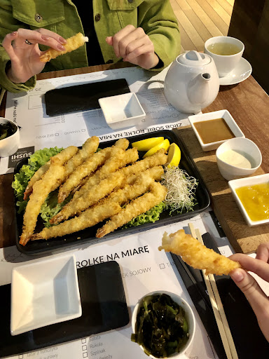 Read moreI fell for quite cheap prices and was intrigued by tough availability of the place. But I was lucky to book a table for the same evening. Though we were given 1,5 hour to spend in there. When we got there the service probably seemed to be nice, but I had a feeling like we couldn’t relax and enjoy because the waitresses were pacing around like bees and looking at tables with eyes looking for who to get rid of. Thanks for letting us sit for 2,5 hrs though! But we were weirdly asked if we had been warned about reservation duration and that we should free the table. Mixed impressions. Coming to food, it was very average. Our ‘no rice’ sushi were very big, so we could hardly place to mouth and chew them. And the sushi are said to be based on Tamago — Japanese omelette, while I felt like I was eating a pancake (naleśnik) with fish and vegetables. Tamago tastes completely different. Tempura shrimps we ordered as a starter tasted worse than the sauces accompanying them. Though the shrimps were of a big size but it felt like fried watery something. The only reason I’m giving it a three, not two, is that after all of that the waitress properly packed our meal to take away and tried to behave nicer than all the time before, she even apologized for having to ask...