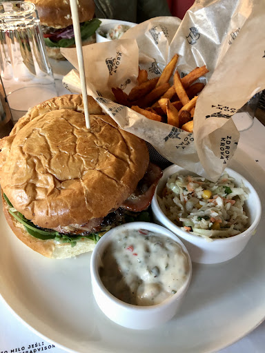 DANIA GŁÓWNE: Burger SURF N’ TURF Klasyczny Burger uzupełniony o smażone na maśle doprawione krewetki i sosem słodko-kwaśnym (lokalny wyrób). Bardzo dobra kompozycja dla smakoszy krewetek i osób, które lubią burgery. Podczas zamawiania burgera obsługa pyta i stopień wysmażenia burgera co jest ogromnym plusem dla restauracji.