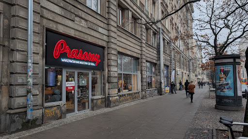 One of the oldest self-service milk bar in Warsaw. Since 1956. Located on the outskirts of MDM (acronym for Marszałkowska Dzielnica Mieszkaniowa; eng. Marszalkowska residential estate). Named 'Bar Prasowy' (eng. newspapers bar) after a former local newspaper printing house that used to occupied a nearby building standing on the opposite side of the street. Closed down in 2011 has been brought to life thanks to the locals and activist associated with the 'Przychodnia' squat and reopen under new management in 2013. The interior hasn't chagned much and resemble original decoration including classic tablecloth pattern, floor tiles and black walls with authentic white letters once used to display menu. To top it up with a stylish old-school neon welcoming visitors entering its premises. A classic milk bar menu extended by European dishes and speciality of the month. Quiet before noon it gets busy during lunch and diner time. Even though they never stop improving it's very busy on Sundays (shops are closed) so expect a queue and be ready to wait for your pierogi up to 15...