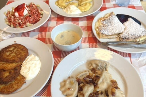 However, the food is tasty and I typically take visitors and friends here as an introduction to Polish food to avoid the typical tourist traps. The placki ziemniaczane (potato pancakes) are my personal favorite, but they also make a mighty-fine pierogi z kapustą i grzybami (dumplings with cabbage and mushrooms). Some of the other menu items have been a hit or miss for me, and there are some dishes that I believe other restaurants may do better, such as naleśniki, but overall, this place is very affordable and a great place to experience Polish...