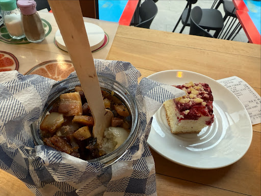 Read moreI asked what meat was in the pyzy, she said beef. Neat, I ordered the meat pyzy with liver berry topping.
