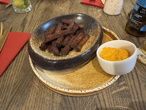 Read moreNiestety nie było to dobre doświadczenie :c Odwiedziłam to miejsce w ramach restaurant week, skuszona menu, w którym królowała dziczyzna, jednak to co zrobiono tutaj z tymi składnikami, jest bardzo smutne i niezbyt smaczne. Tatar z sarniny był mdły i smakował jakby bez żadnej obróbki trafił ze sklepu na talerz. Został podany na melonie z chrzanem. Po wymieszaniu składników był w miarę zjadliwy, ale tylko dlatego, że nie było go czuć wśród dominującego smaku melona i chrzanu. Jednak jest różnica między kompozycją smaków, a ratowaniem dania dodatkami i dobry składnik powinien bronić się sam. Tutaj tego nie było. Nawet żółtko podane osobno miało żyłki z białka i pływało w jego resztkach. Chleb słabej jakości… Szkoda mi tej sarny na to :( Danie główne w postaci steku z jelenia było podobne - stek żylasty, twardy, niedoprawiony… Smak ratowało puree z dyni, no ale nie o to w tym miało chodzić. Na koniec sernik sernik… nawet nie wiem do czego to porównać. Mógłby się ratować, gdyby był sprzedawany jako fit-deser, chociaż nawet wtedy nie dawałby radości. Był suchy, mdły i mało wyrazisty. Czekolada słabej jakości próbowała to przykryć, ale utrudniały to złote kulki, które chrzęściły w zębach. Absolutnie tragiczne były też warunki - posadzono nas przy drzwiach wejściowych, przy śmietniku, ale ok - takie miejsce się trafiło, trudno. Siedziałyśmy na dole, a na górze organizowana była jakaś impreza pracownicza. Bardzo głośna i bardzo nieprzyjemna. Żeby pójść do toalety, trzeba się było udać właśnie na górę i przedrzeć przez wiele pijanych i tańczących osób. W łazience na umywalce, koszu na śmieci i na ziemi była krew, która ubrudziła mi koszulę. Kelner próbował tłumaczyć, że to sztuczna krew z okazji Halloween, jednak sztuczna krew znajdowała się na lustrze w przedpokoju, postaci odcisków dłoni, a krew w łazience dookoła umywalki zdecydowanie na taką nie wyglądała. W koszu na śmieci było mnóstwo papieru, którym ktoś ewidentnie próbował zatamować krwawienie. Podczas wychodzenie byłyśmy świadkami, jak jeden z pracowników głośno wyklina na jednego z gości, który czymś go zdenerwował. Używał niewybrednych słów i zupełnie nie przejmował się ludźmi dookoła. Restauracja próbuje sie stylizować na elegancką, ale zdecydowanie bliżej jej do pubu...