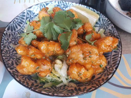 The food was absolutely delicious! We tried the marinated avocado, fried octopus with veggies, and a dessert, all paired with a lovely white wine. Oh boy, all was so delicious! Everything was cooked to perfection and tasted amazing. The wine selection was impressive, with a variety of options to complement our meal perfectly. A big shout-out to the chef!