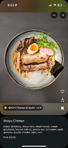I ordered ramen at this place, but since the menu wasn’t written in English, I showed the owner a photo and told him I wanted to order that ramen. However, the ramen I received did not match the photo at all. The ramen in the photo clearly had pork toppings, mushrooms, and a generous amount of vegetables, but the one I got only had a single, sad-looking skewer on top. When I told the owner that this wasn’t the ramen I ordered, he said the item listed in Polish below the photo was “chicken ramen.” I had shown him the photo because I can’t read Polish, but he bluntly responded that since it said “chicken,” he gave me chicken ramen. It came across as discriminatory toward someone who doesn’t speak the local language. He didn’t even apologize and claimed he did nothing wrong. He told me that if I wanted the pork ramen, I had to order again. He didn’t seem to understand that if the food served looks completely different from the photo on the menu, that’s misleading and unacceptable. The service was extremely unfriendly, and there was no sense of hospitality toward travelers visiting Poland. On top of that, the ramen was cold, and the broth was overly salty. Since it was an open kitchen, I could see the cooking process—and it was shocking. The kitchen was messy, and they didn’t use sanitary gloves at all. When making sushi, I even saw someone squeezing tuna with their bare hands, with water pouring out of it. It was disgusting. After returning home, I felt really unwell. I would not recommend this...